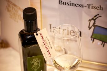 V.l. Sasha Smolčić vom Weingut DEKLIC, Stephanie Gastager von ART RedaktionsTeam, Rudolf und Beatrix Nemetschke von AVISTRIA Olivenöl, Anessa und William Negri von NEGRI Olivenöl, Johann Lafer mit istrischen Trüffeln von ZIGANTE, Marko Krstačić und Dunja Bacac vom Weingut MEDEA, Sofija Smolčić vom Weingut DEKLIC, Christina Zauner von ART RedaktionsTeam.
