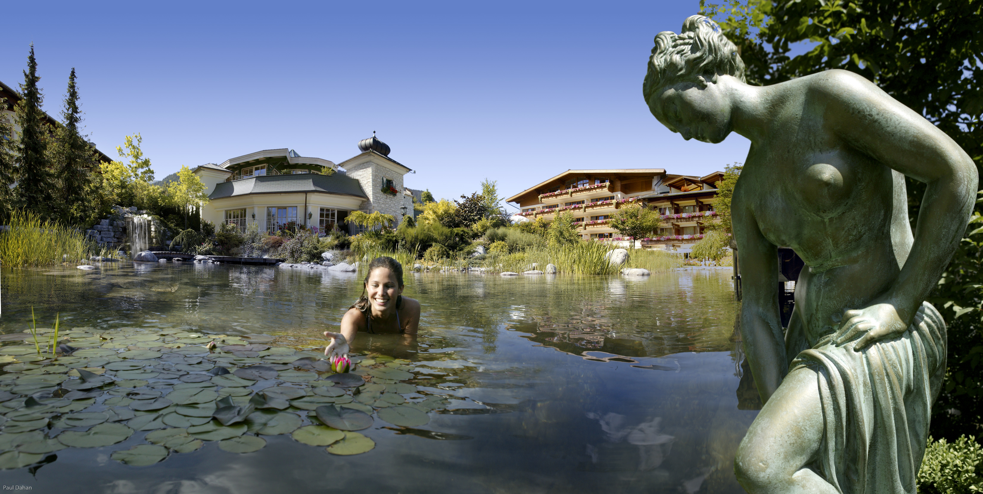 Die Zirbenstube oder die mit 3 Hauben gekrönte Salzburgerstube mit Holzvertäfelungen, Kachelofen und stilvollen Tischdekorationen vermitteln eine behagliche Atmosphäre. Legendär sind die österreichischen Mehlspeisen und das Strudelbuffet am Nachmittag. Mit 3 Lilien ausgezeichnet ist das Spa mit beheiztem Außenpool, Saunabereich und vielem mehr. Im liebevoll angelegten Garten entfaltet sich mit einer Fülle an blühenden Pflanzen ein selten farbenprächtiges, duftendes Schauspiel – kristallklarer Naturbadeteich inklusive.