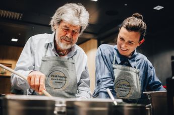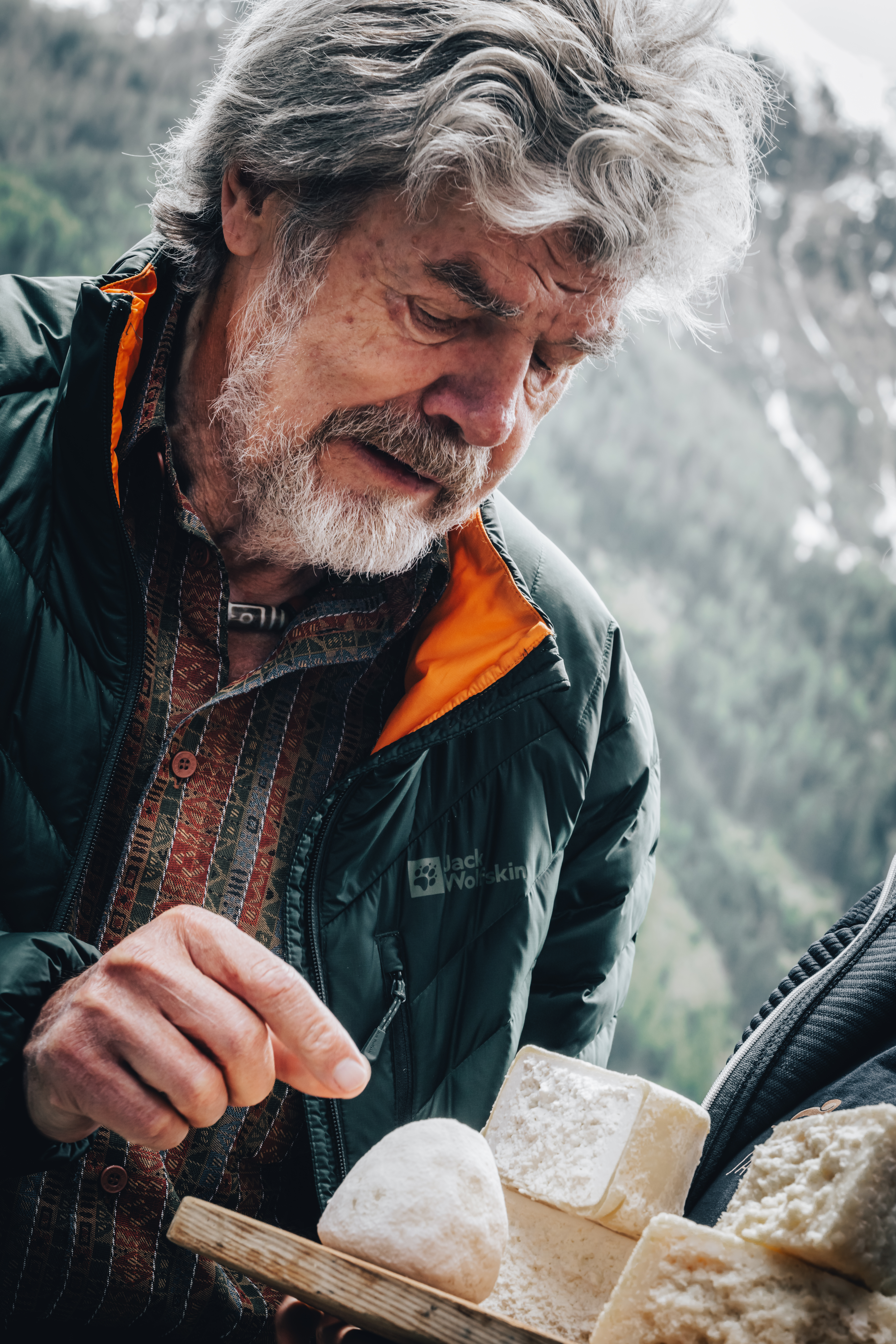 Reinhold Messner begleitete die Gäste einen Tag lang auf einer Wanderung zu drei großartigen Sennereien im Ahrntal. Vom OLM Nature Escape ging es zuerst zu Michael Steiners Manufaktur "Eggemoa", einem Hof auf 1.300 Metern Höhe, auf dem sensationeller Rohmilchkäse hergestellt wird, der weit über die Grenzen Südtirols hinaus bekannt ist. Danach wurden noch zwei weitere Sennereien besucht, bei denen zuerst die erstaunliche Vielfalt von Ahrntaler Graukäse und dann kräftige Bergkäseklassiker verkostet wurden.