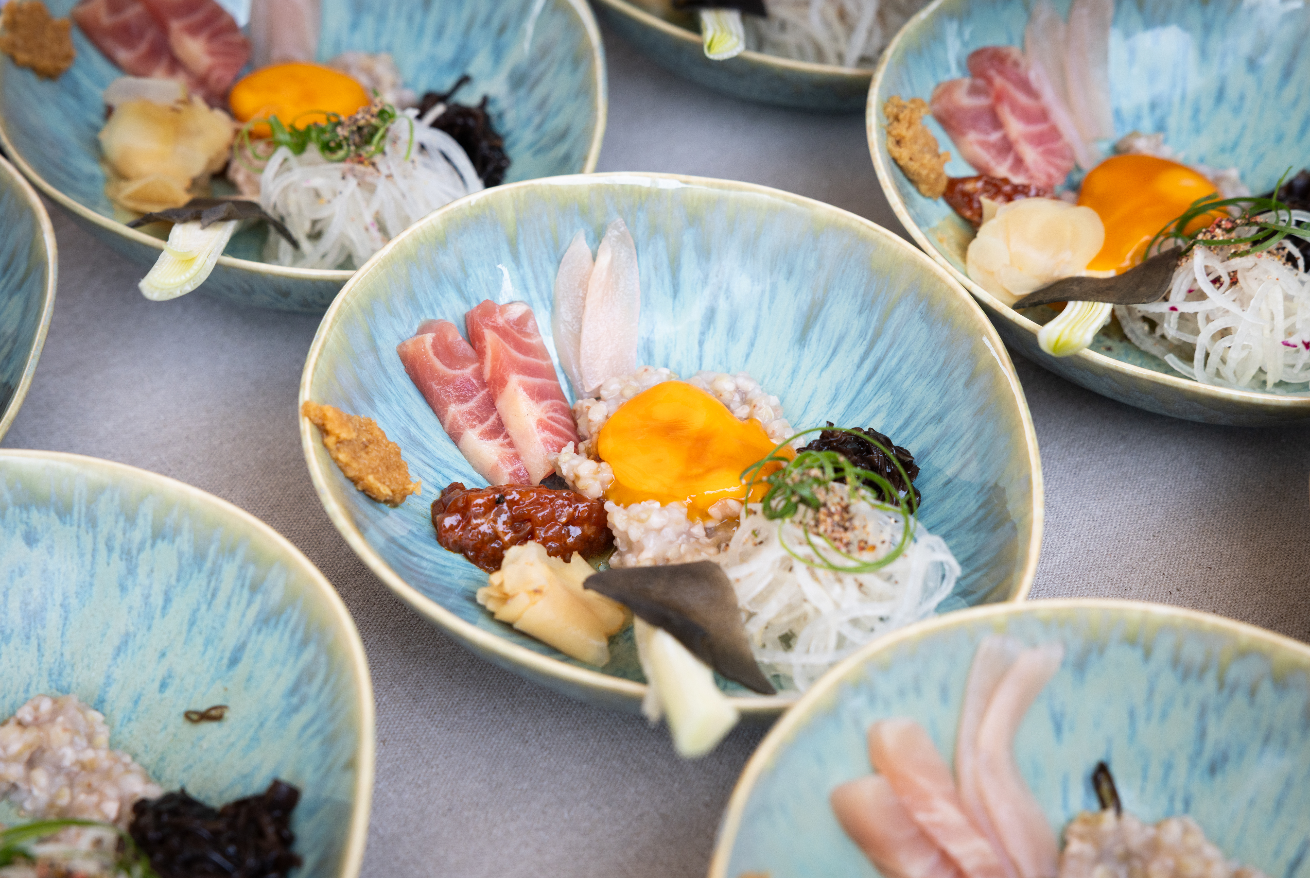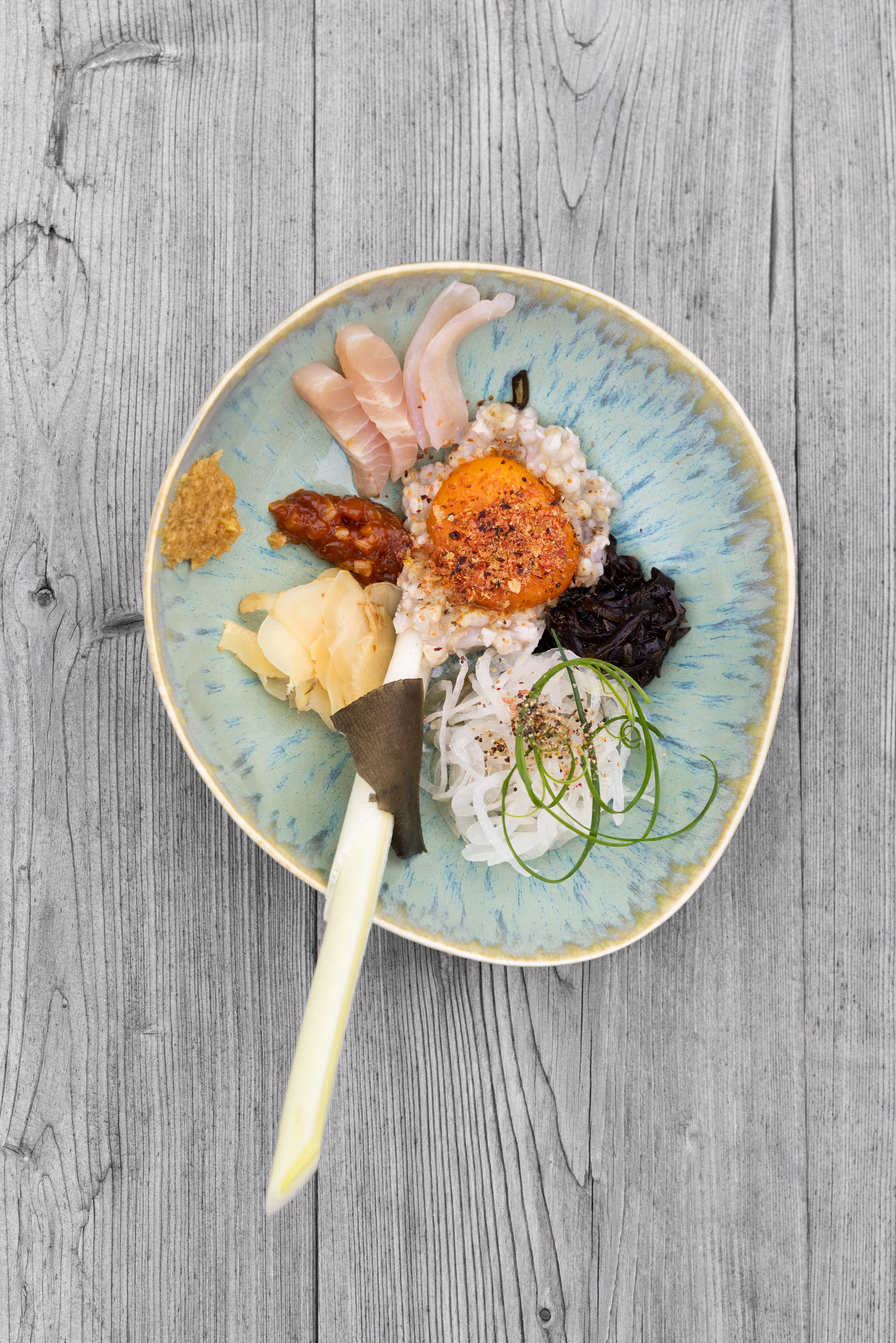 Sternekoch Lukas Nagl vom Restaurant Bootshaus im Seehotel Das Traunsee zeigte eindrucksvoll eine regionale Abwandlung des Katsuobushi, Hauptbestandteil des japanischen Suppengrundstocks. Zu verkosten gab es ein Don Buri mit Karpfen, österreichischem Reis, confiertem Eigelb und seiner Eigenkreation Karpfobushi. Korrespondierende Weine wurden von den burgenländischen Weingütern Achs und Feiler Artinger verkostet.