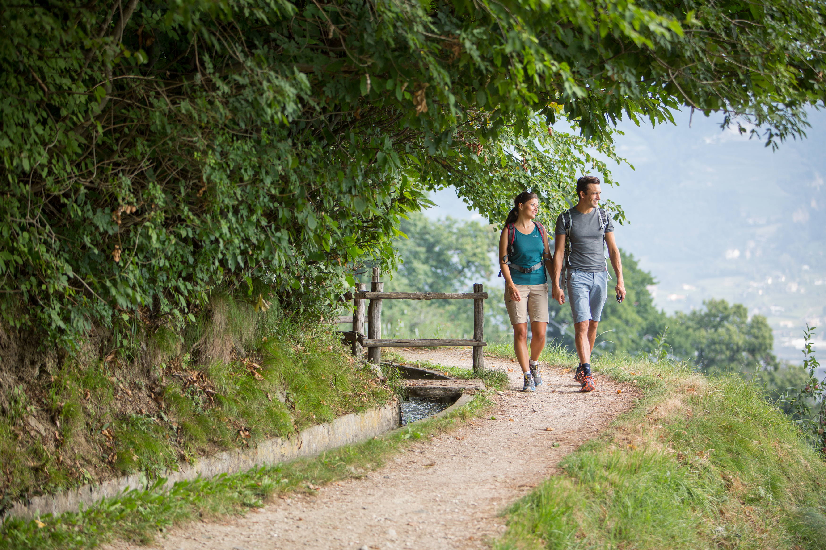 Da die Bauern in Südtirol seit jeher mit der Trockenheit zu kämpfen hatten, wurden Waale als Bewässerungslösung eingerichtet und daneben die Waalwege als Kontrollwege installiert. Der Marlinger Waalweg ist der Längste und wohl Beeindruckendste in Südtirol. Ein Panorama über den gesamten Meraner Talkessel belohnt die Wandersmühen. Perfekter Ausgangspunkt ist das familiär geführte La Maiena Meran Resort: