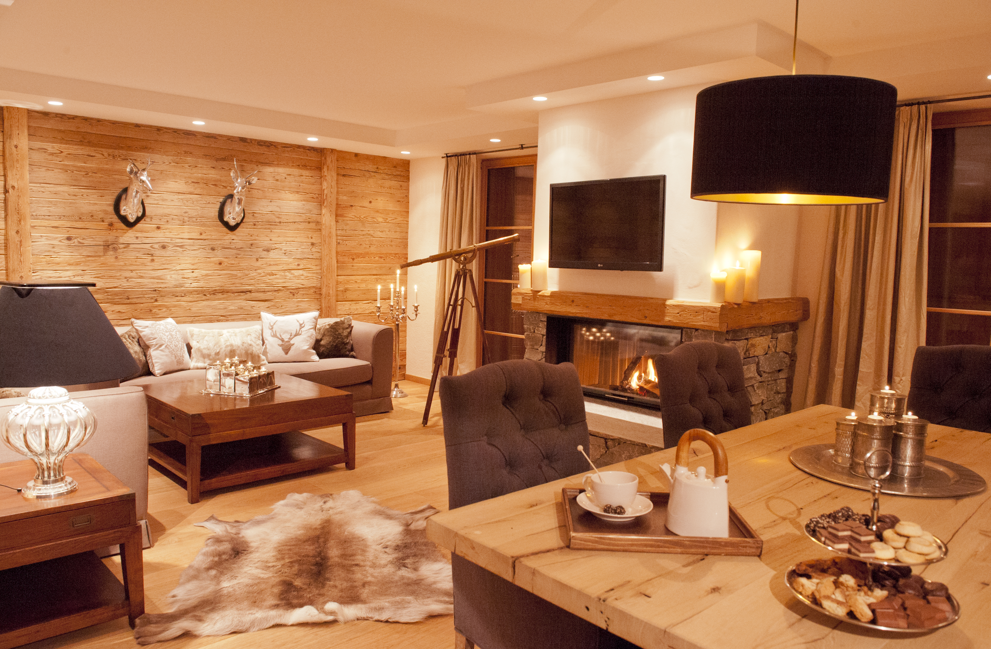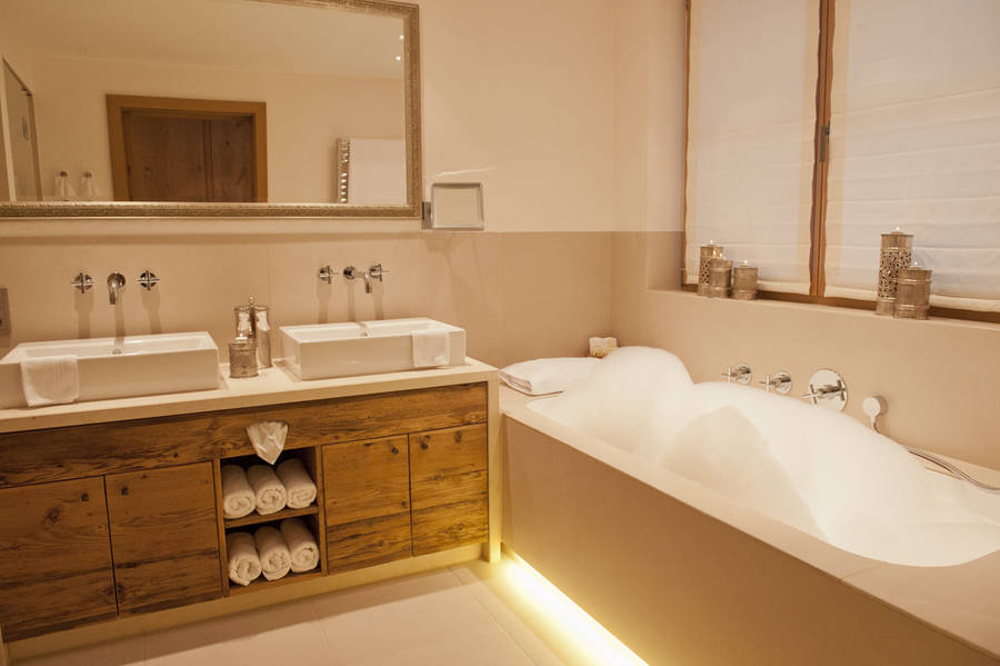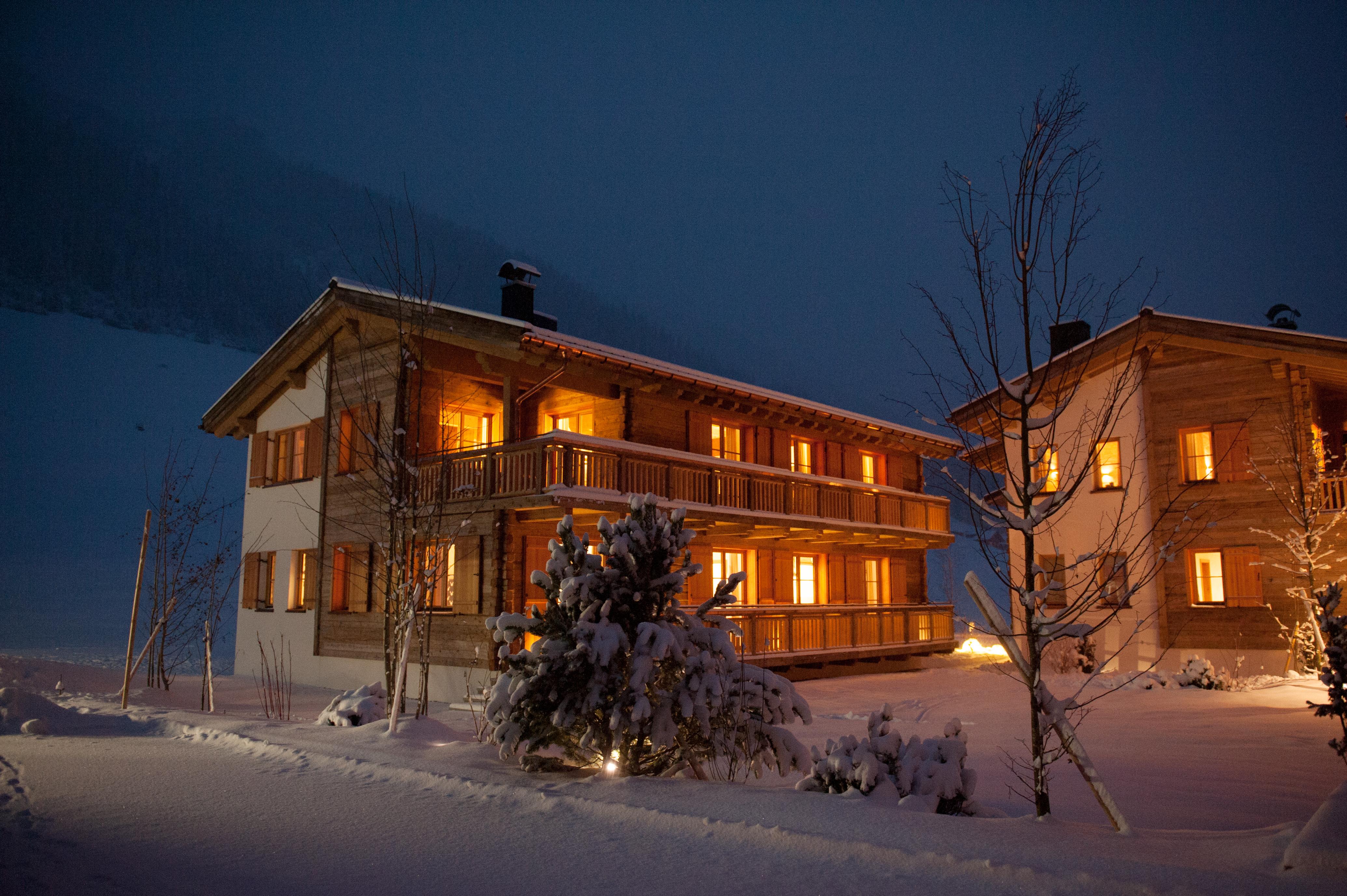 Ein Concierge ist immer erreichbar, Transfers nach Lech und Zürs sind kostenlos, die Zimmer werden zweimal täglich hergerichtet. Jedes Chalet hat eine eigene Sauna, Chalet Nummer 1 sogar zwei. Für Hochzeiten, Geburtstage oder verlängerte Wochenenden finden bis zu zehn Personen Platz – in drei Chalets, die diskret voneinander getrennt, bei Bedarf aber kombinierbar sind. Die Weinauswahl erfolgt in Kooperation mit der Hospiz Alm, auch seltene Großflaschen gehören zum Angebot.