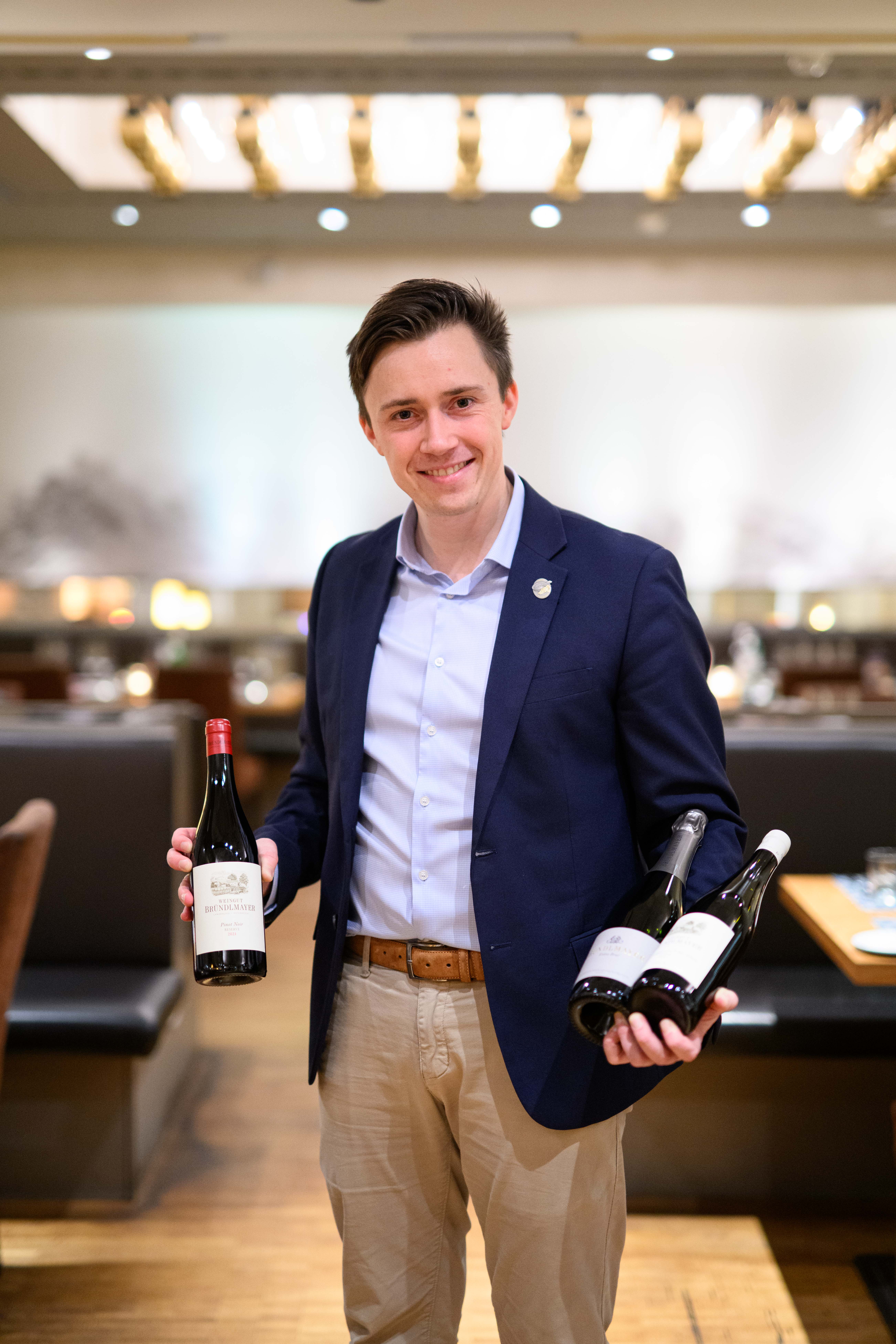 Für die perfekte Weinbegleitung des Abends sorgte das Weingut Bründlmayer, das – abgestimmt auf die sehr individuellen Kreationen der Spitzenköche – zu jedem Glas den passenden Wein servierte. Nach Extra Brut NV Reserve als Apero folgten Grüner Veltliner 2023 Ried Berg Vogelsang, Riesling Alte Reben 2022, Grüner Veltliner 2023 Langenlois Alte Reben, Chardonnay Reserve 2022 Ried Steinberg, Pinot Noir Reserve 2021 sowie als krönender Abschluss zur Bitterschokolade mit Blaumohn von Gastgeber Alexander Tschebull eine Grüner Veltliner Auslese, Langenloiser Alte Reben 2018. Mit Grapester Granatapfel und Grapester Yuzu hatte das Kamptaler Traditionsweingut zudem seine beiden neuen, spannenden und alkoholfreien Alternativen mit dabei, die in der Gourmetszene gerade so richtig am Durchstarten sind.