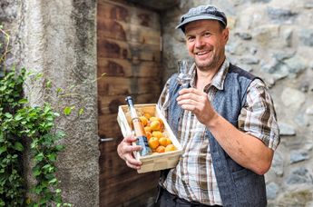 Martin Rastner brennt mit Leidenschaft – im doppelten Sinne. In der modernsten Brennerei des Eisacktals destilliert er aus Marillen, Äpfeln, Birnen und Weintrauben feinste Brände und Liköre. „Der kreative Umgang mit dem Brennkessel begeistert mich", sagt der Brennmeister, dessen Favorit der Gewürztraminer ist. Mit dem „Eisack Valley", dem ersten Eisacktaler Gin, schreibt er Brennereigeschichte. Seit Oktober 2025 bietet Familie Rastner drei Ferienwohnungen im Klimahaus – Sauna mit Plose-Blick und Außenwhirlpool inklusive. Nur zehn Gehminuten von Brixens Altstadt entfernt, vereint der Hof städtische Nähe mit bäuerlicher Authentizität. Die Früchte werden zeitnah vergoren, destilliert und oft in alten Eichenfässern gelagert – Handwerk, das man schmeckt.