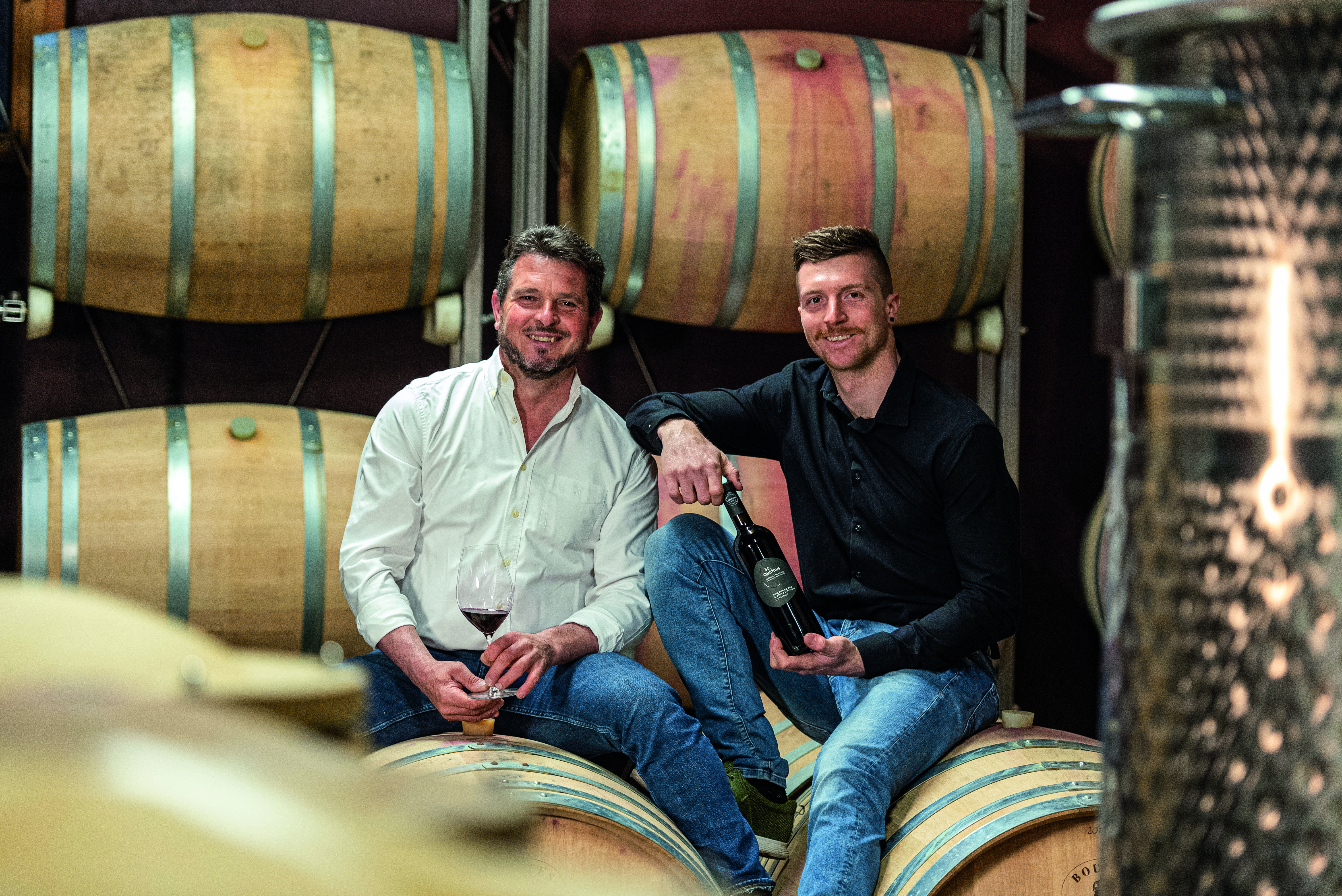 Birgit und Robert Sinn haben Geschichte geschrieben: Als erster biozertifizierter Hof bei Roter Hahn setzen sie auf dem Demeter-Weingut auf pilzwiderstandsfähige Rebsorten. In Tonamphoren reift etwa ihr „Planties Amphora", ein maischevergorener Weißwein mit Aromen nach reifem Pfirsich, Aprikose, Apfel und Muskatnuss sowie Noten von Whiskey. „Unsere Familie bewirtschaftet diesen Hof seit Generationen. Wir leben mit und von der Natur – daher ist biologischer Anbau für uns selbstverständlich", erklärt Robert die Philosophie. Sohn Michael kreiert mit einer lokalen Brauerei das Fruchtbier „Lagrinus Sour" mit Lagrein-Traubenmost. Die vier Ferienwohnungen vereinen den Überetscher Baustil mit zeitgemäßer Architektur – mit Zirbenholz, Loden und einem herrlichen Ausblick auf den Kalterer See.