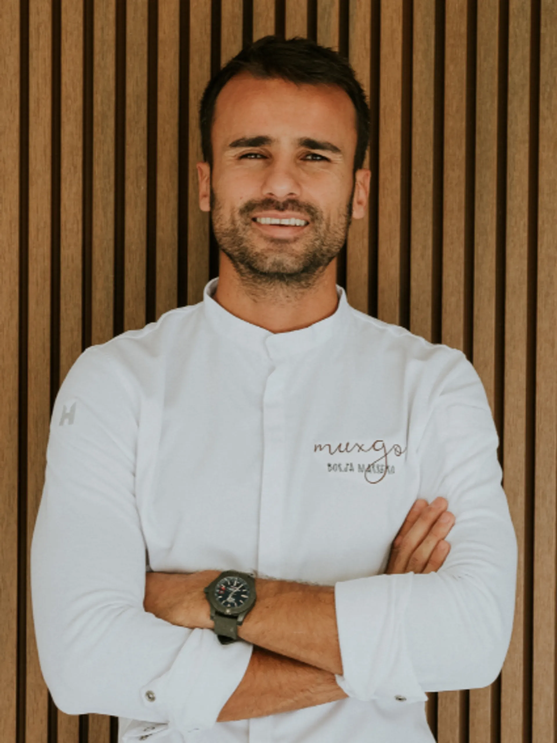 In seinem Restaurant „Muxgo“ im 5-Sternehotel Santa Catalina in Las Palmas de Gran Canaria hat Borja Marrero ein Konzept entwickelt, das Forschung, Landwirtschaft und kulinarische Tradition zu einer eigenständigen Sprache verdichtet. Molke aus eigener Tierhaltung, fermentierte Produkte, Kiefernrinde als Mehl und Geschmacksträger – Marrero arbeitet mit dem, was die Kanarischen Inseln seit Jahrhunderten prägt, und übersetzt es in eine Hochküche, die international Maßstäbe setzt. Ausgezeichnet mit einem Michelin-Stern und einem Grünen Stern.