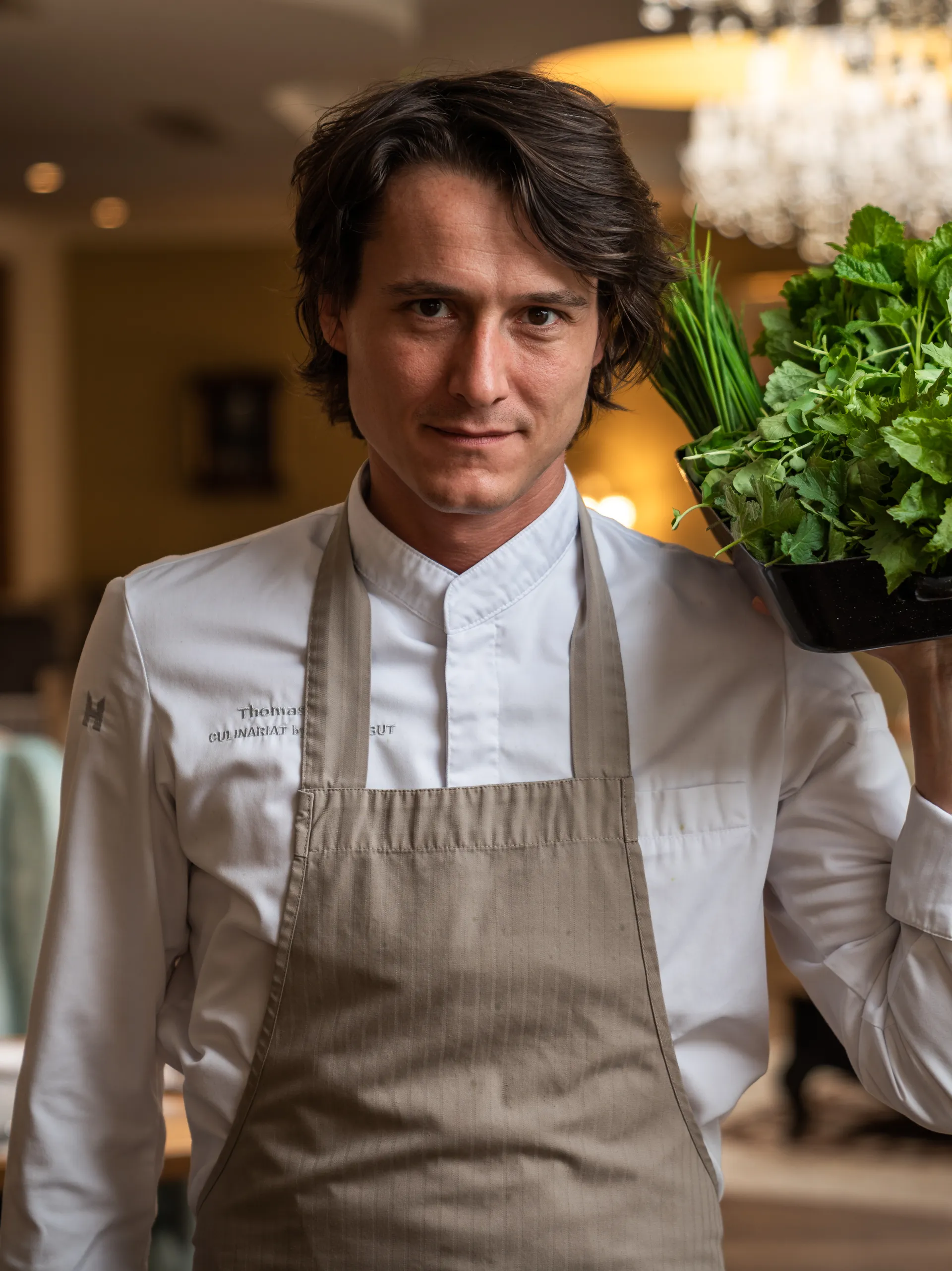 Wer die „Herbstfreunde“ versteht, versteht Andreas Herbst. Der Executive Chef kocht heimatverbunden und ehrlich – er pflückt Brennnesseln am Waldrand, holt Holunderblüten aus dem Gebüsch und macht daraus Gerichte, von denen Gourmets träumen. Sein Prinzip „From Nose to Tail" ist keine Modeerscheinung, sondern gelebte Überzeugung. Alte Rezepturen wahren, Eigengeschmäcker forcieren, nichts übertünchen – das ist die Philosophie, die seine Kochkunst auszeichnet.